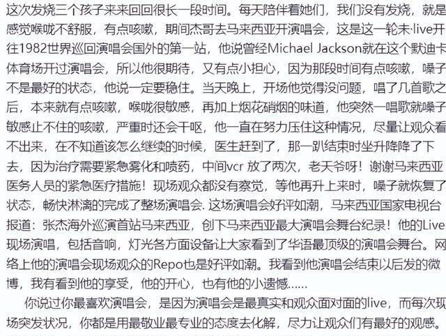 多亏马来西亚相关部门反应非常迅速,紧急医疗措施很完善,所以说张杰很完美地完成了这场演唱会,演唱会则是好评如潮。